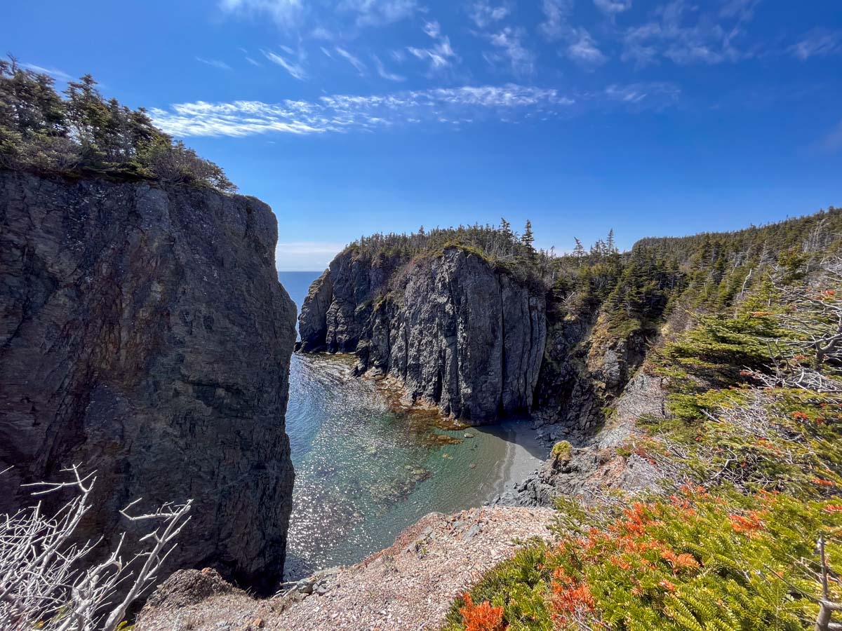 Par chance… Nous n’aurions pas aimé lire ceci dans les journaux : “Deux touristes et deux habitants de Terre-Neuve se sont faits prendre par la marée et ont dû être héliportés. Nous avons entamé les recherches pour trouver un des aventuriers disparus en mer”.
