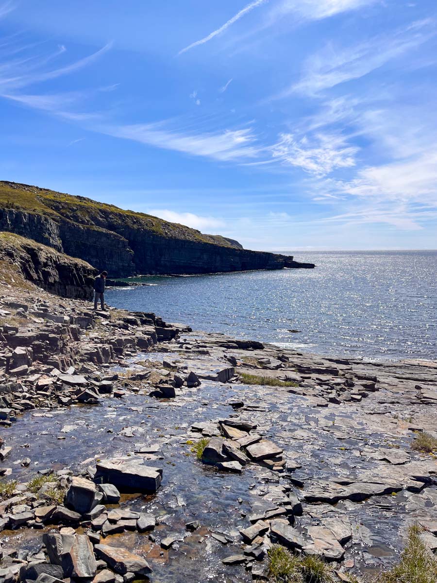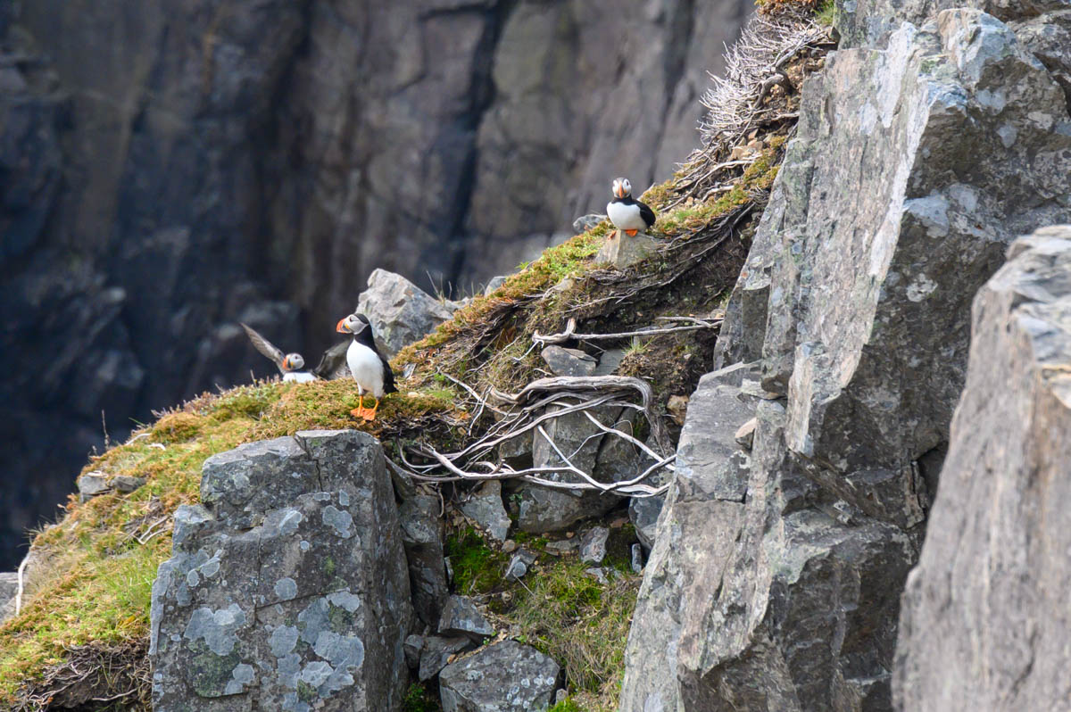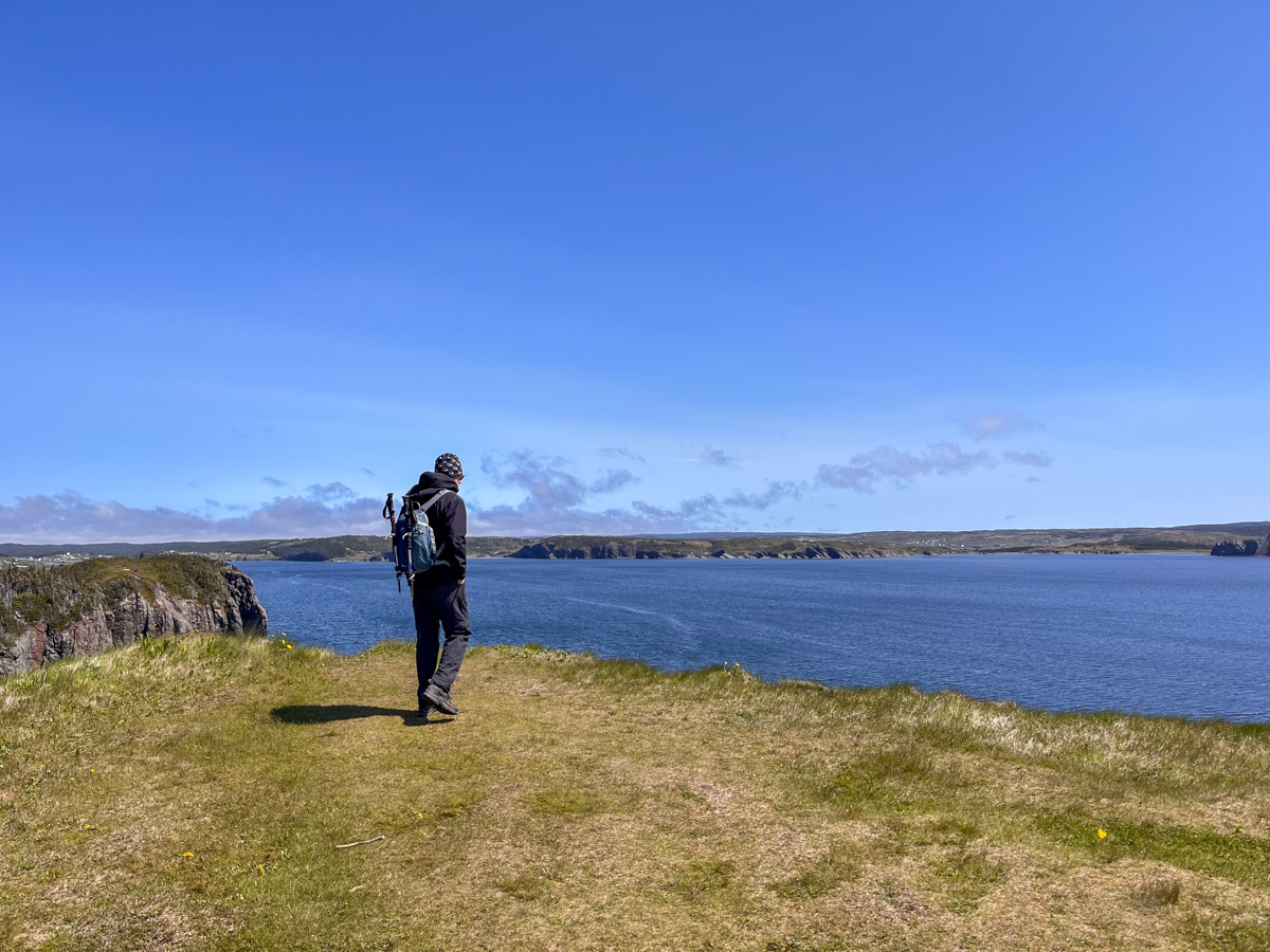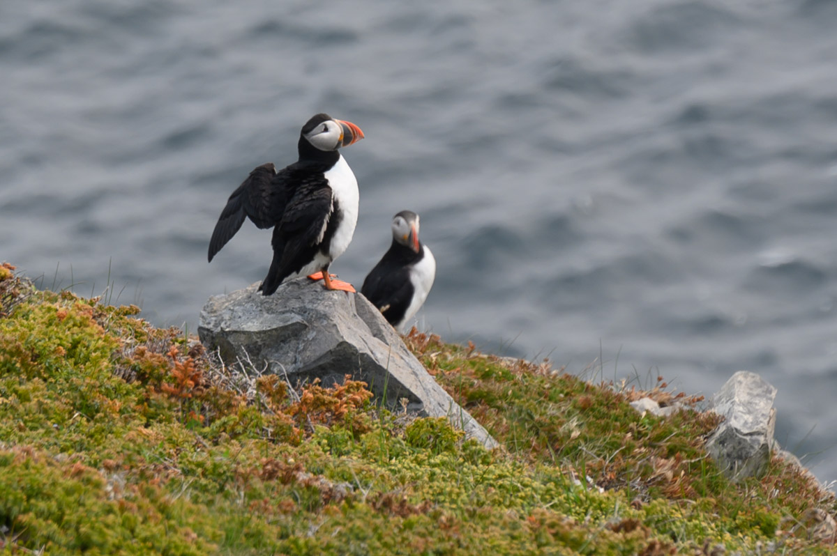 On part pour la rando. Il commence à faire réellement chaud. Mais beaucoup plus qu’à l’habitude. Il devrait faire 19 aujourd’hui. Le sentier que nous décidons de faire se nomme la boucle de Spillars Cove. Un petit fait intéressant, Peter Pan a été filmé à cet endroit. C’est très beau, très haut. Si tu tombes, tes héritiers penseront que tu étais un peu con de t’aventurer si près de la falaise. Par contre, il y a plein de “terriers” de macareux. Ils sont très très près. Ils sont tellement beaux. Finalement on les a nos macareux.