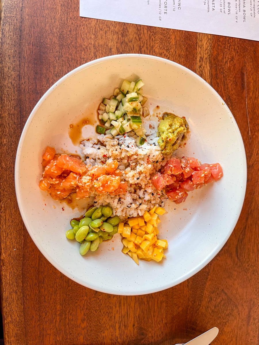 Après un petit apéro, direction le resto, qui est juste à côté. Mais réellement, c’est le voisin. C’est le Brightside Bistro.
