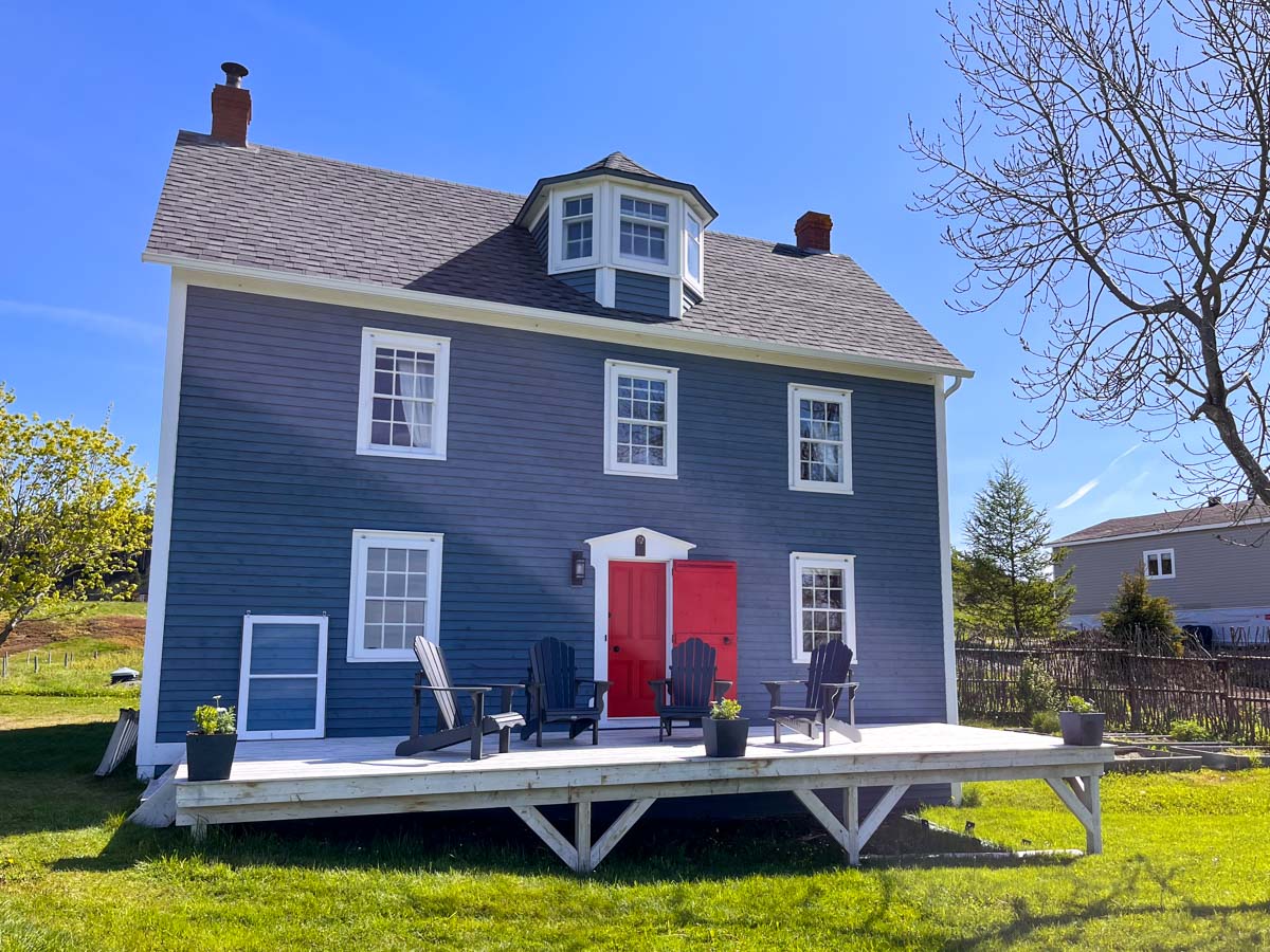 Fait cocasse, vous savez les chaises rouges de Parcs Canada, celles de chez Costo, hyper lourdes, bien les grises que vous voyez sur la photo, elles se déplacent sur le balcon, dû à la force des vents. Ils doivent les attacher. J’en ai une autre aussi bonne. Les pots de fleurs, sont vissés dans le balcon, sinon ils se retrouvent par terre. Ils ont même déjà récupéré leur BBQ, incluant la bonbonne de propane, chez le voisin. Les vents sont assez violents à Terre-neuve.