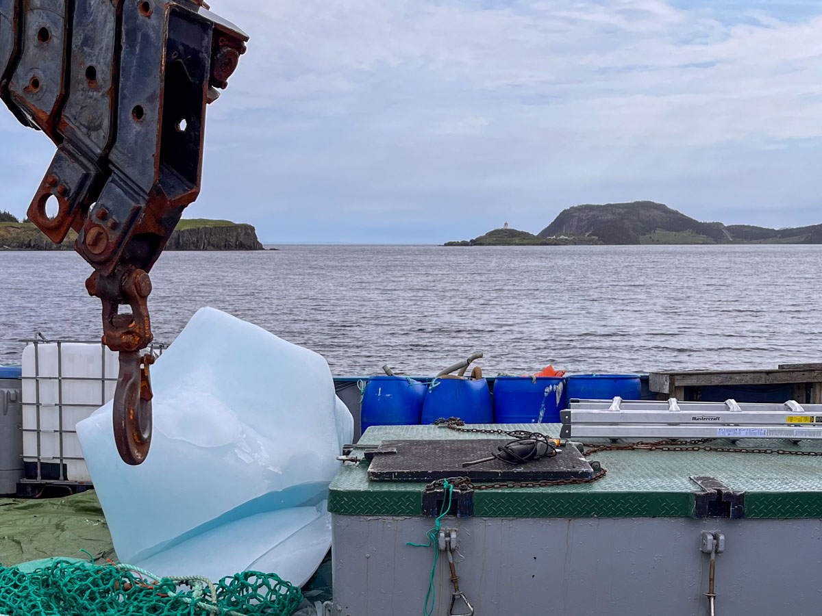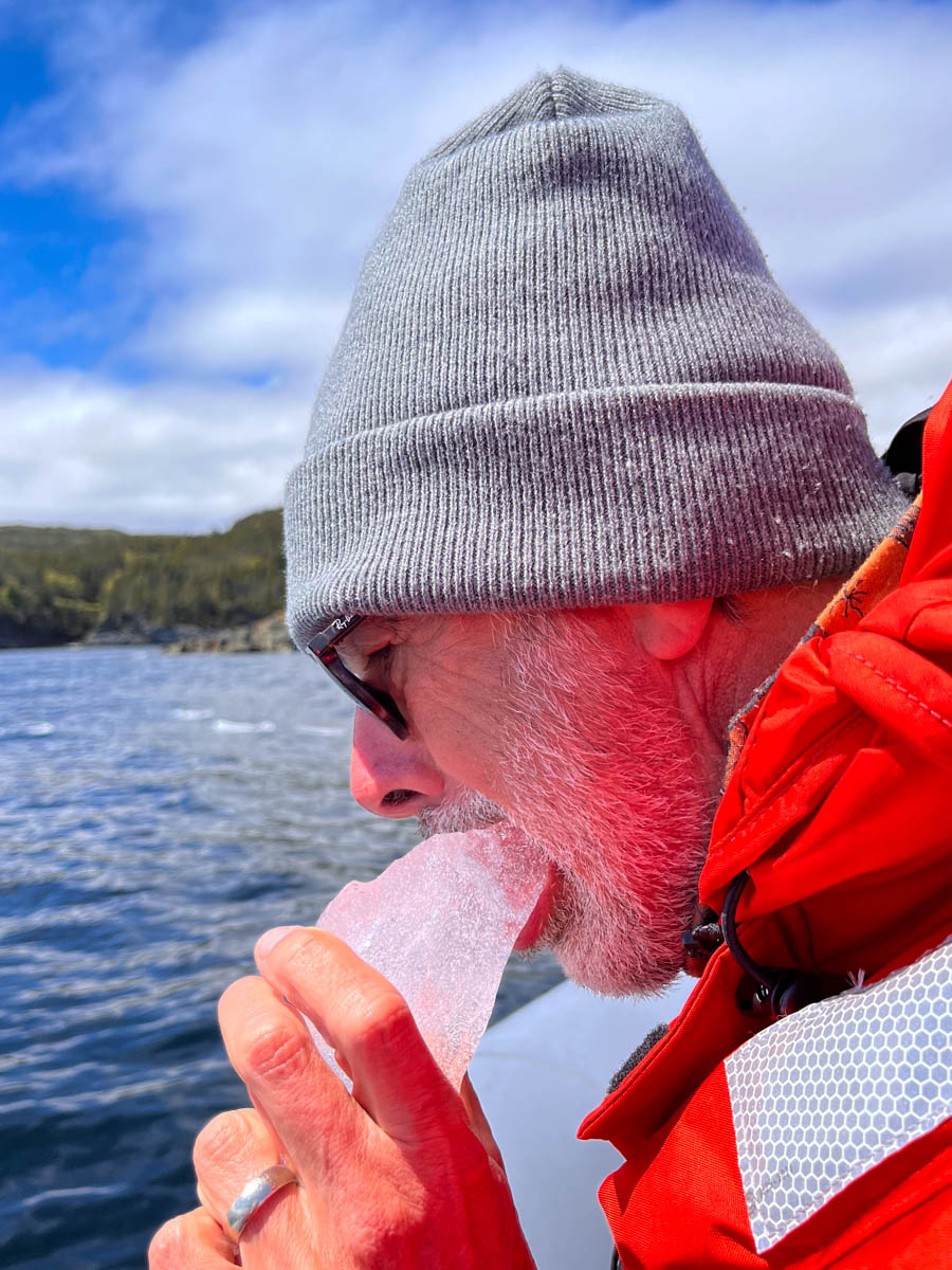 Dernier petit point important. En avant de nous, il y a un bateau qui ramasse la glace de iceberg pour l’eau qui servira à faire de la bière ou de la vodka. Il y a même un gardien, jour et nuit.