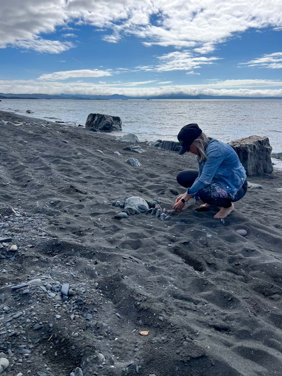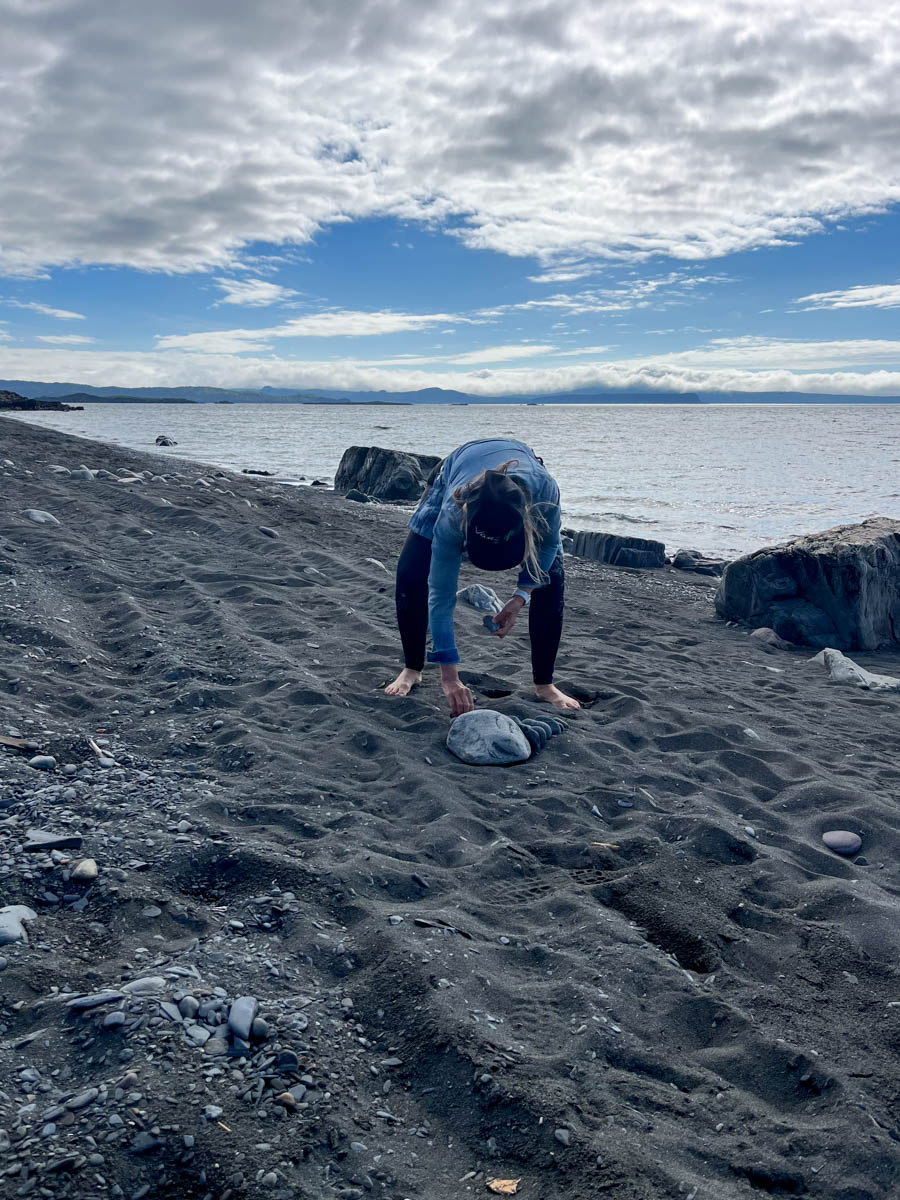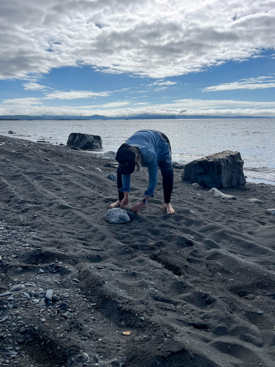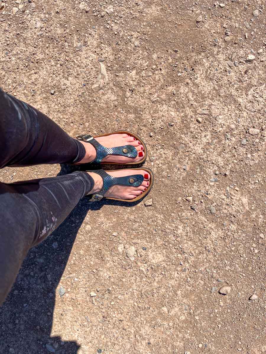 Louise se déchausse tranquillement, on est maintenant en sandales, et on se risque à mettre les pieds dans l’eau glacée.