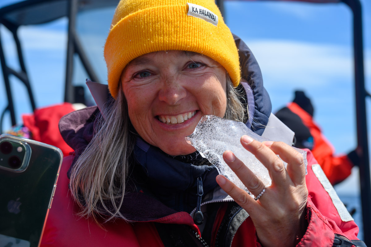 Ça crie “iceberg”, on ne se tourne pas, on scrute l’horizon pour les baleines. Le but, voir les baleines à bosses.