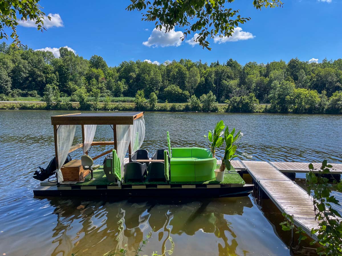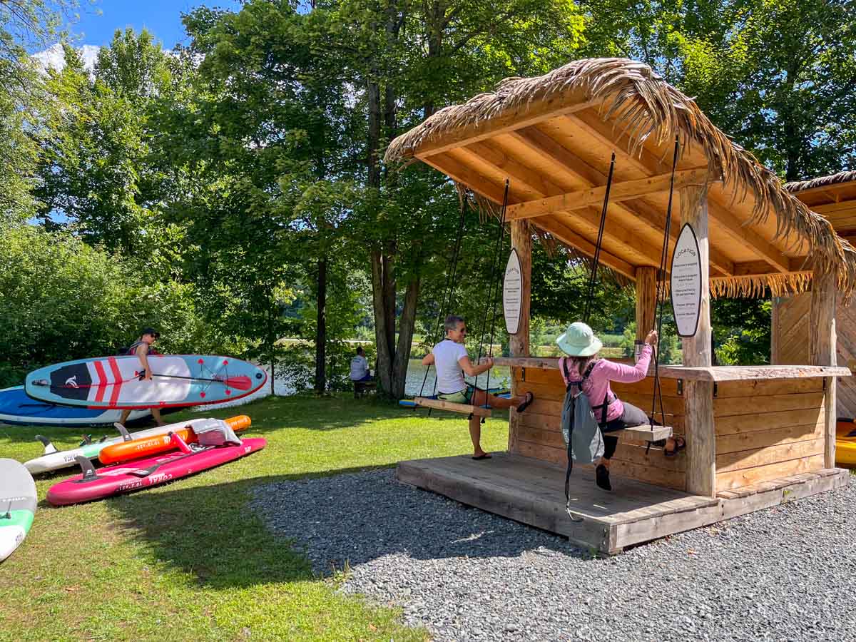 Il y a des balançoires, table de billard, piscine, petit bar en plus. Il y a une zone Vanlife (communautaire), qui est très bien bordée d’arbres. Il y a même une bière (ananas mangue calamansi) brassée à la Confrérie Artisans Brasseurs, selon la recette de Ghyslain, le proprio. Elle est très bonne. C’est un beau petit secret bien gardé cet endroit.