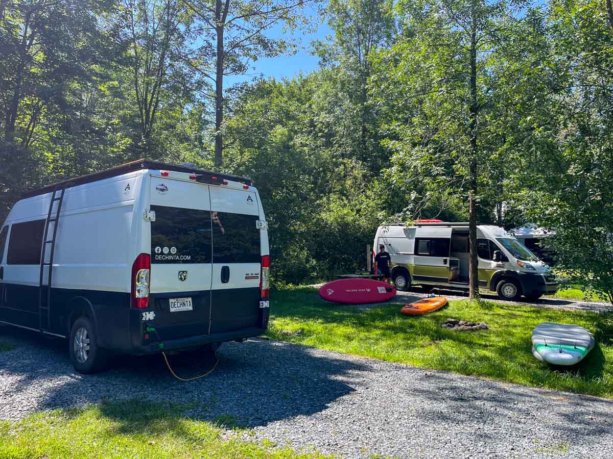 Mais là, WOW, c’est donc bien beau! On capote sérieusement. Tout ce qui nous avaient manqué l’hiver est là. Ils ont tout, et c’est beau. En plus c’est un spot Vanlife Friendly, ce que j’ignorais. L’endroit est charmant, les places de camping le sont tout autant. Beaux spots à feu, ils livrent du bois le soir.