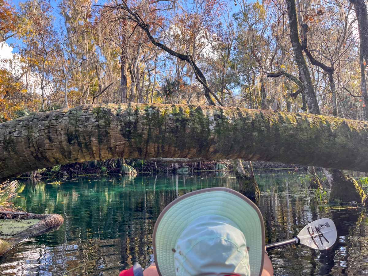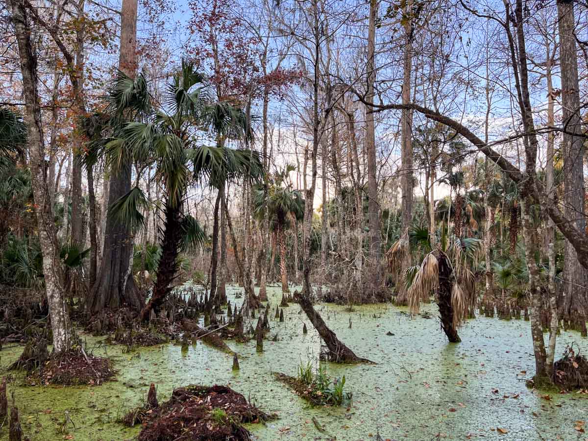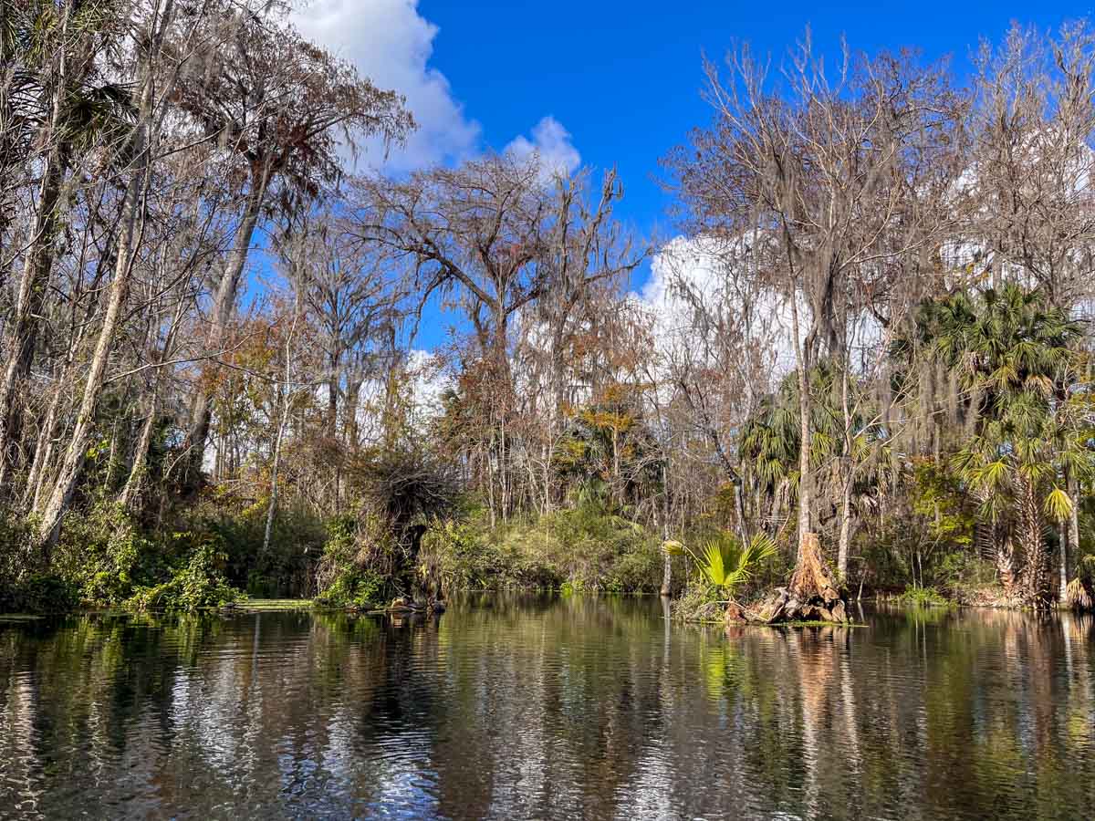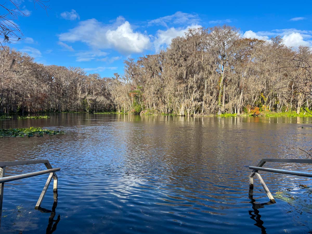 Après un long arrêt chez Aldi (c’est rendu notre épicerie de choix en Floride), direction Silver Springs. On a réservé ici pour 2 nuits. On commence par se tromper d’entrée, le camping est par une autre entrée, plus précisément par la SR35. Notre première impression est WOW. C’est très beau ici. On ne voit que la forêt pour l’instant, j’ai hate de voir le reste.