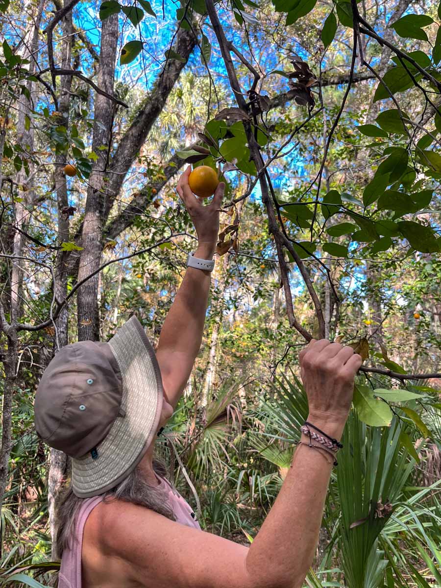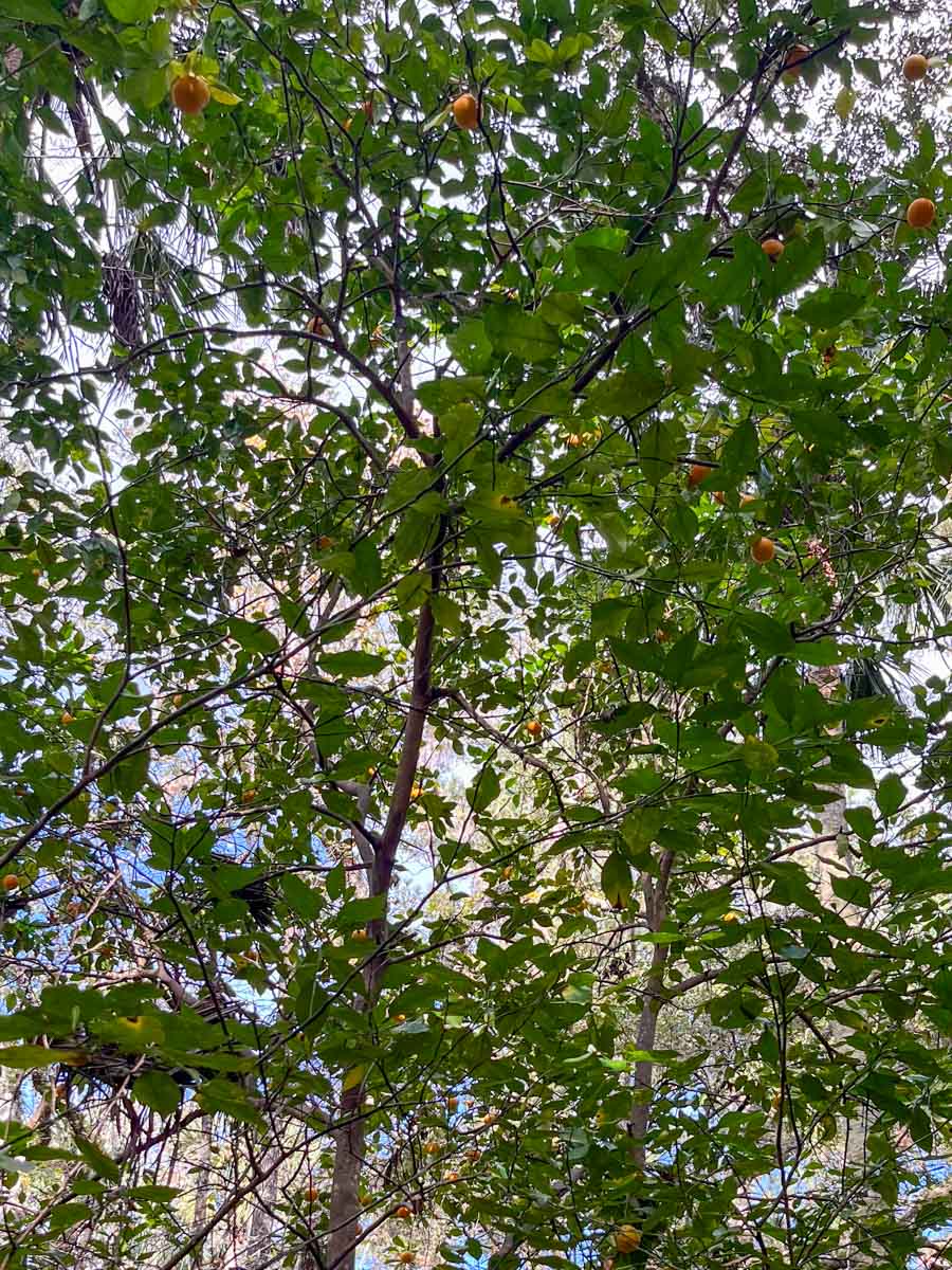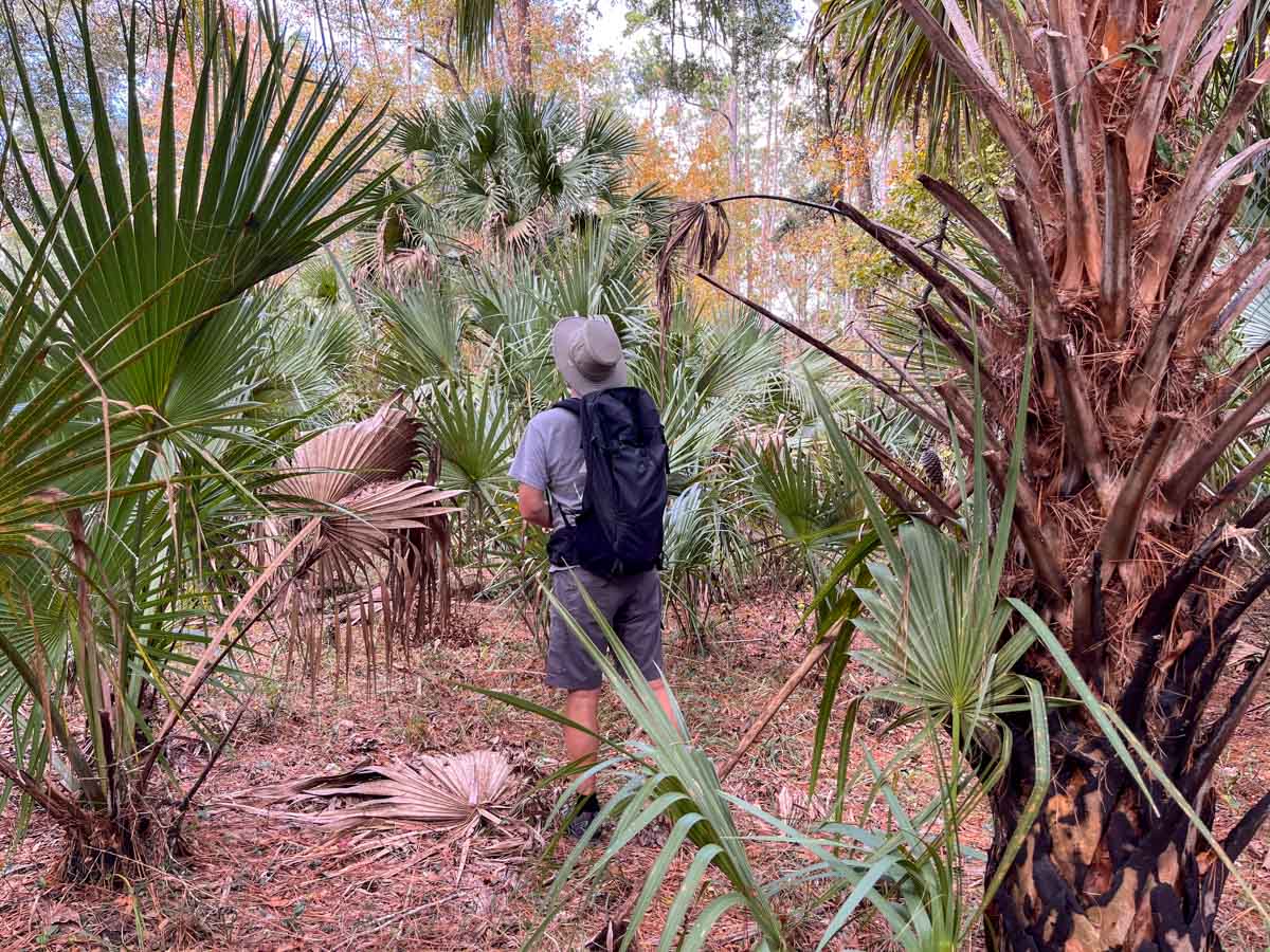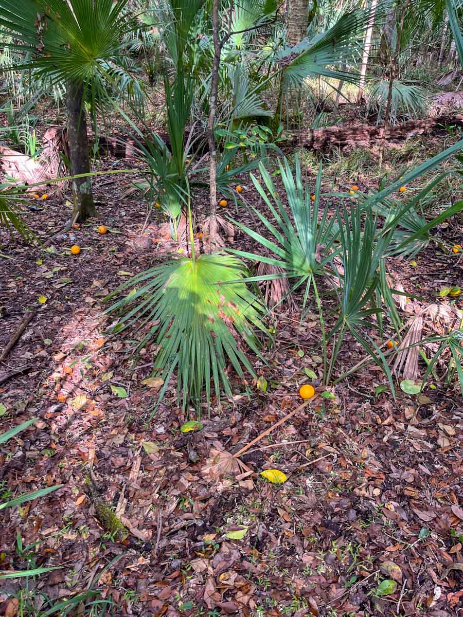 Et 17 km plus tard : On a revisité des forets régénérées par le feu, de petits pins qui viendront gigantesques, des tas de palmiers, des sentiers pas très achalandés, entendu des singes (mais sans les voir), vu des pistes d’ours (on ne s’est pas arrêté pour prendre des photos), été dans des sentiers sauvages, cueilli des oranges sauvages et avons sué en masse.