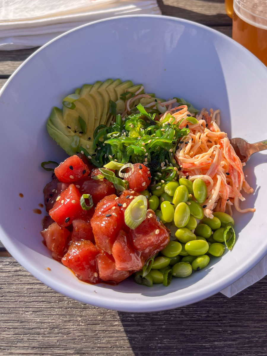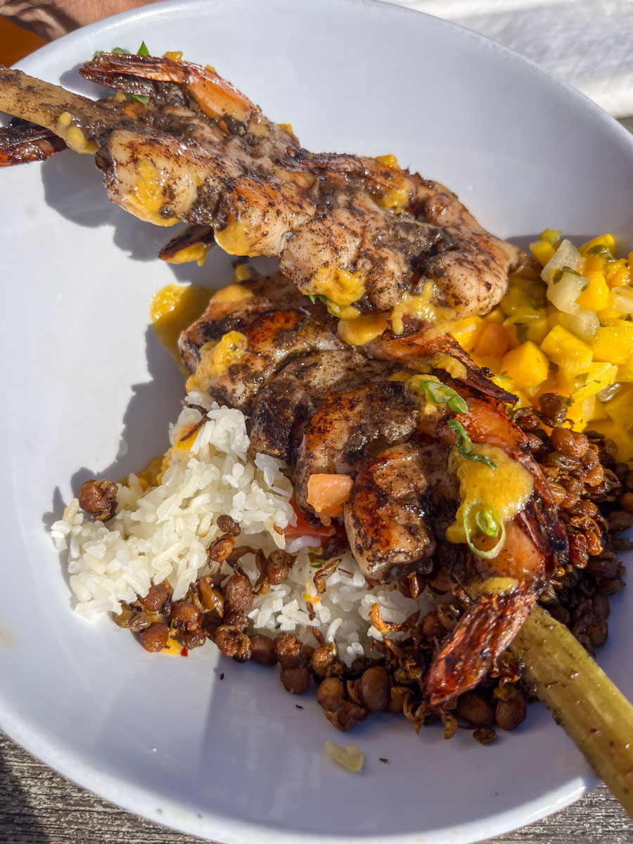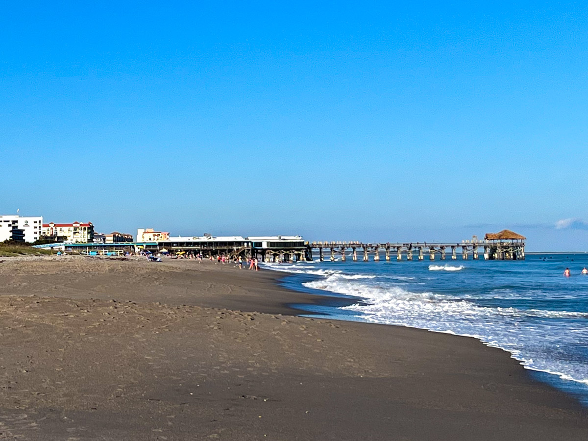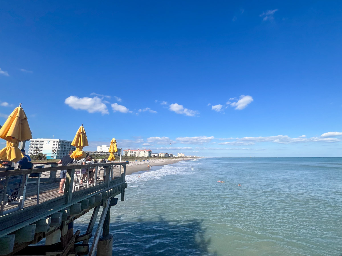 Arrêt suivant, le fameux Pier de Cocoa Beach, avec un peu de marche sur la plage. On a fait les touristes, et non les explorateurs. On est allé manger au resto Pier 62. C’est un resto sur le pier (quai). C’était extrèmement bon, on a été très surpris. Louise un bon Poke Bowl, et moi le Jamaican Jerked Shrimp Bowl. Tout simplement exquis.