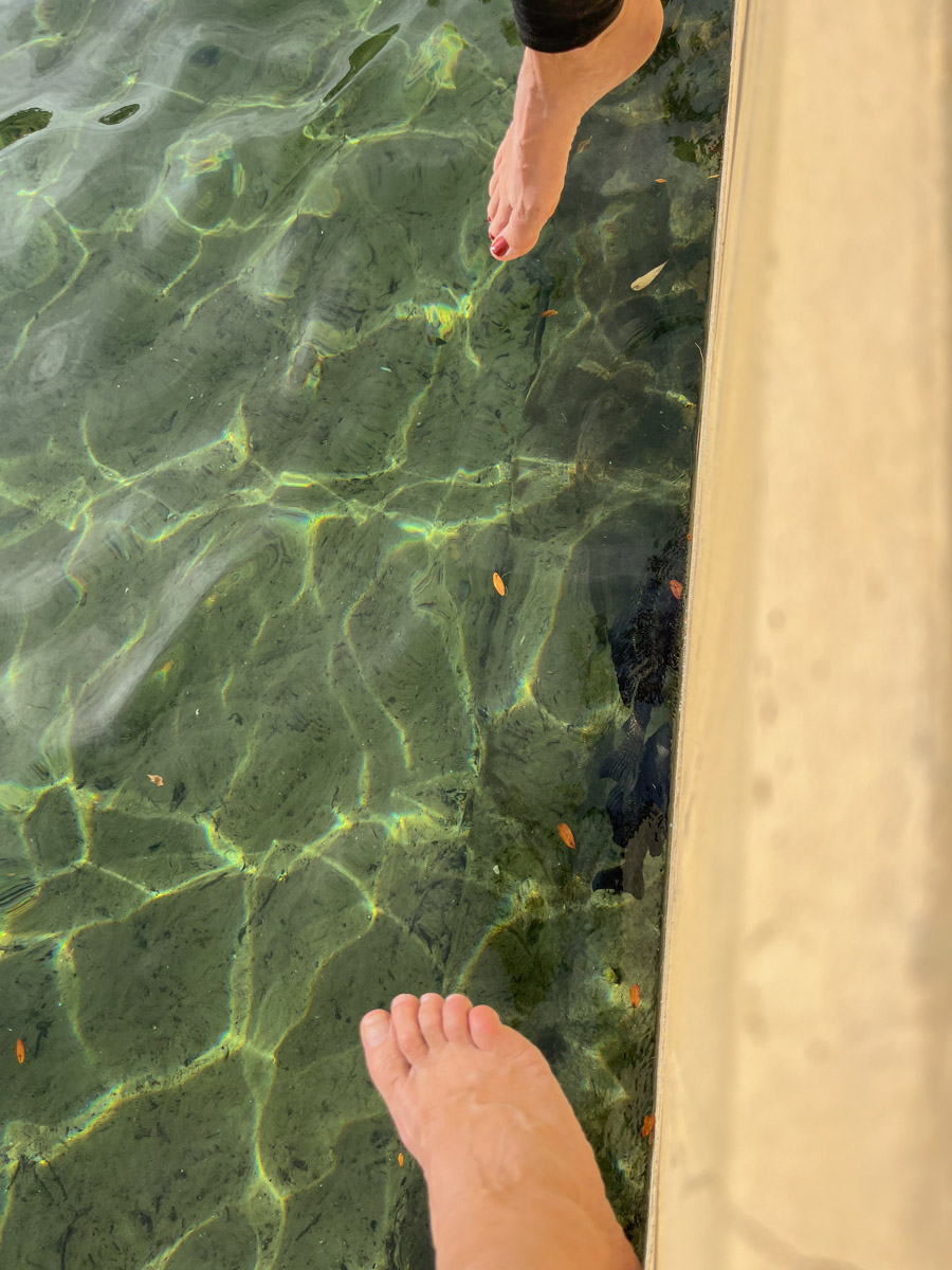Finalement, la journée calme se transforme en marches ici et là. On va sur le bord de la spring, les pieds pendant au bout du.. mur et on regarde l’eau. C’est tellement agréable juste contempler ce qu’on a autour.