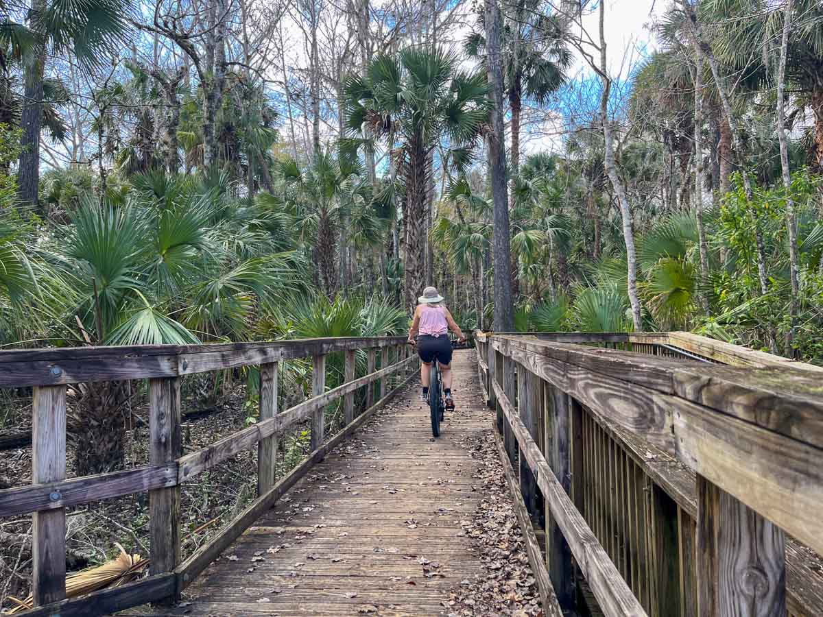 Même si on reste toute la semaine, on s’empresse d’aller voir la spring, mais cette fois en vélo. C’est du repérage. Faire 8 km à pied, pour aller voir et ensuite y retourner, c’est un peu loin. Sentier Silver Springs Trail, c’est magnifique, mais toujours pas de singes.