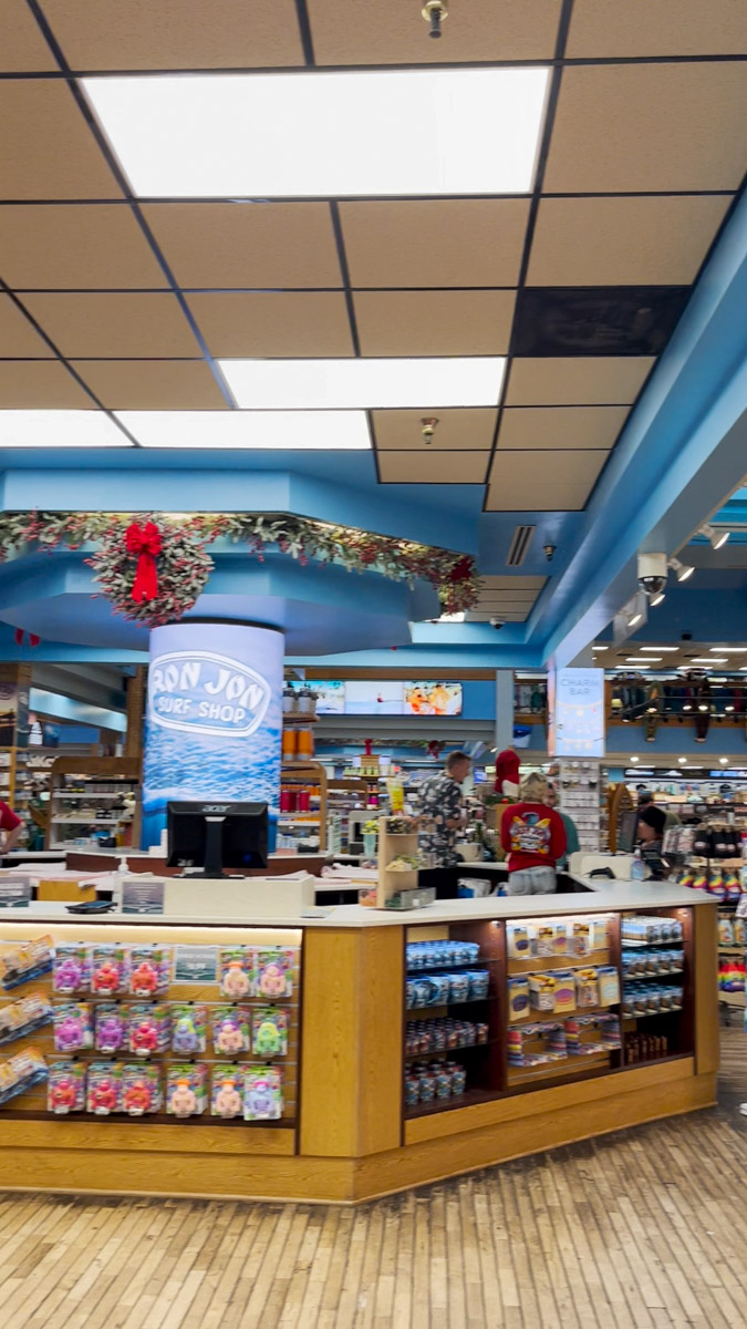Après un peu de marche, l’arrêt le plus important, le shopping à l’immense Ron Jon. Louise a eu une brillante idée, de nous donner une mission. On doit trouver un cadeau pour notre tendre moitié. On le cache, et on se le donne à Noël. Juste pour dire, le magasin est tellement gros, impossible de savoir dans quel département elle est allée.