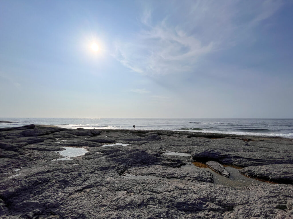 Quelle belle journée sur le bord de la plage. Aucun risque de coup de soleil par contre. Il fait 4 avec un facteur éolien de -1. Pour la baignade, on se reprendra.