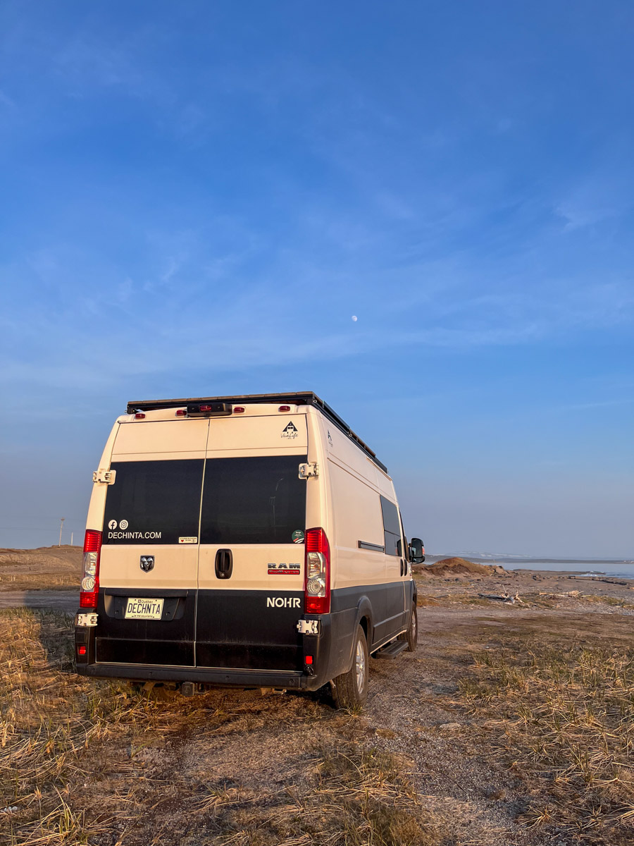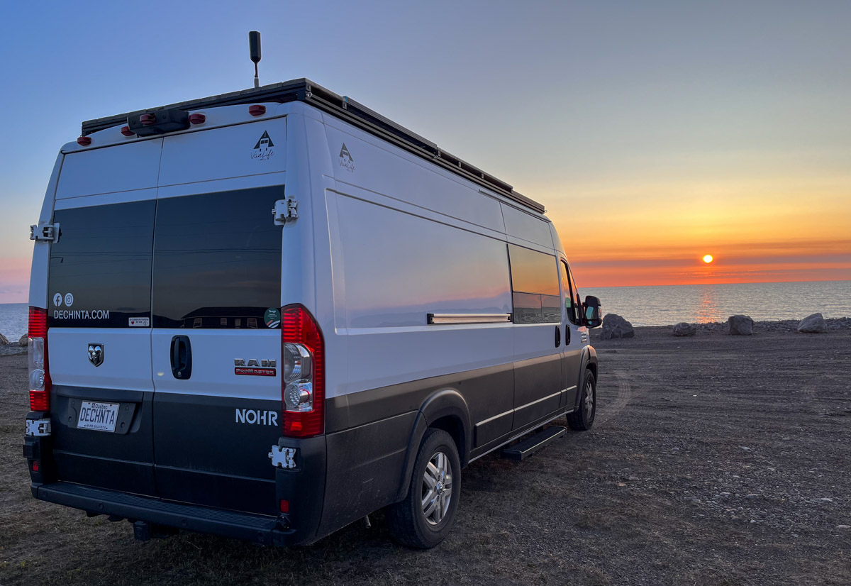 Pour le dodo, finalement, un Ford Transit aménagé, et un gros classe C qui prend une partie du stationnement du haut, nous accompagnent. Tout le monde est respectueux. Ça c’est la vie…