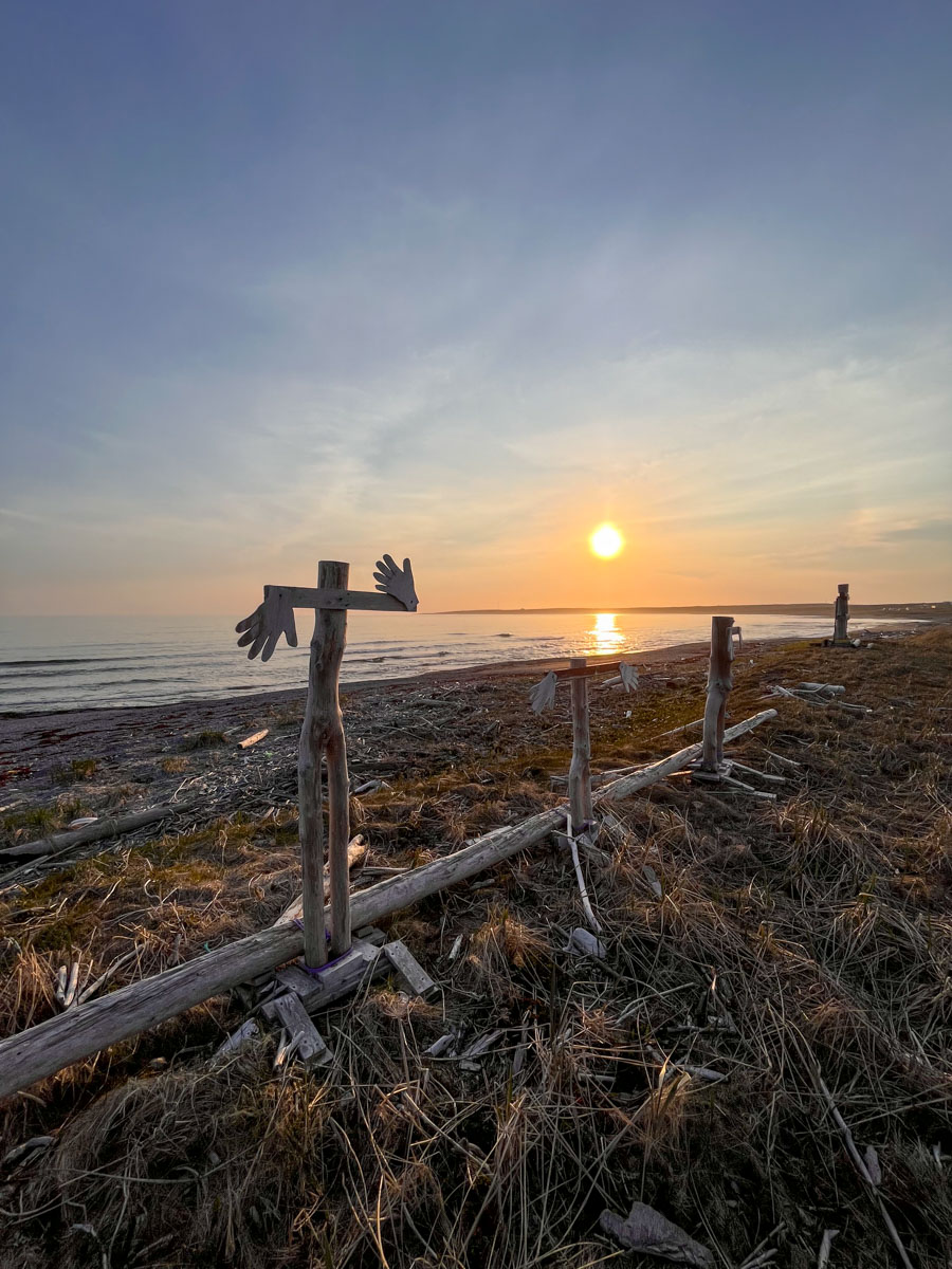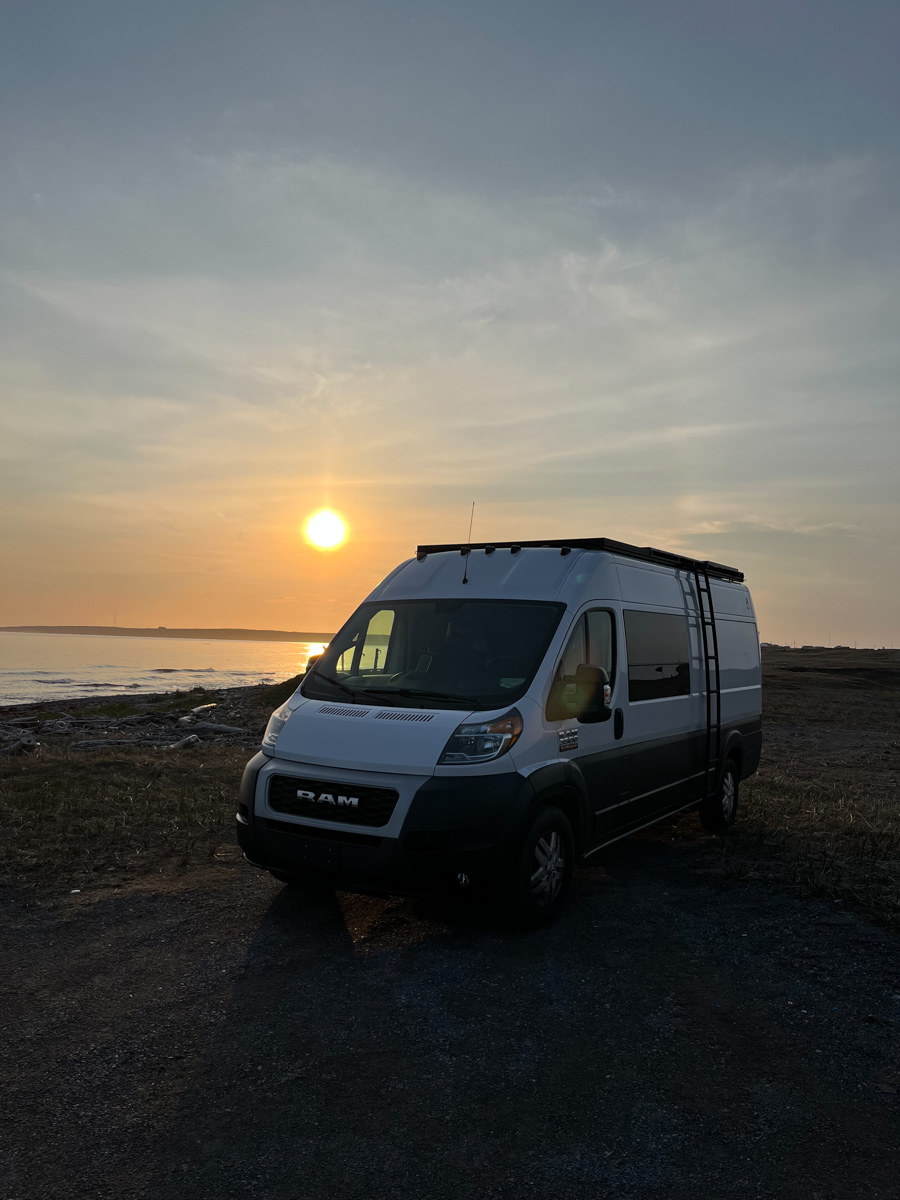 Nous finissons par trouver un spot à Parson’s Pond, avec une vue magnifique, et nous profitons d’un peu de chaleur du soleil ainsi que d’un beau coucher de soleil. Il fait froid, mais nos cœurs sont réchauffés.