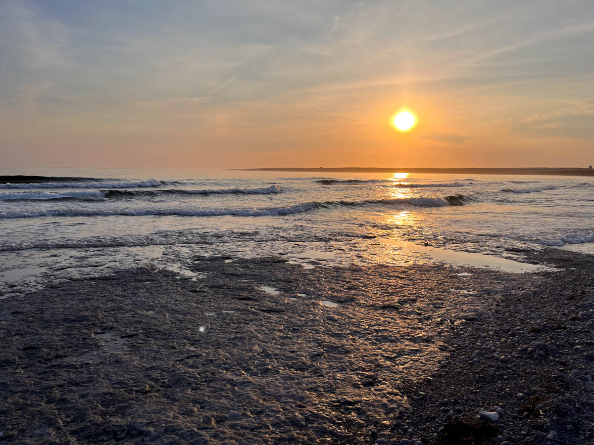 Quelle belle journée sur le bord de la plage. Aucun risque de coup de soleil par contre. Il fait 4 avec un facteur éolien de -1. Pour la baignade, on se reprendra.