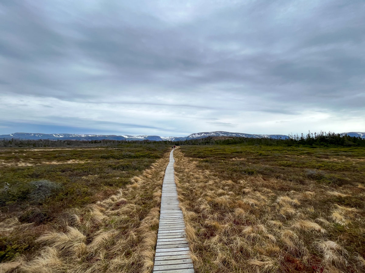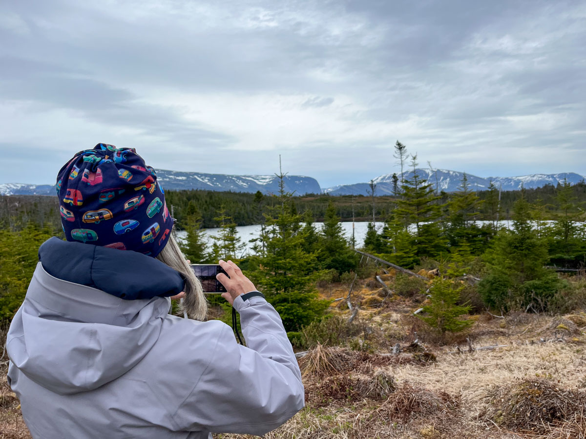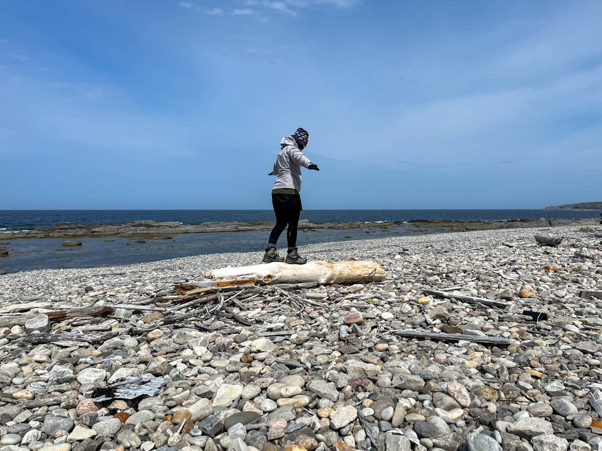 On est vraiment en mode slow travel, et le premier stop est à 10 km. C’est le Bill’s woods Trail, tout près de Daniel’s Harbour. Il fait chaud 10 degrés, et le vent se calme.