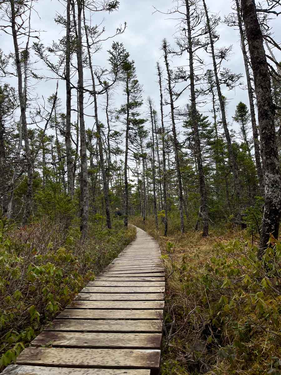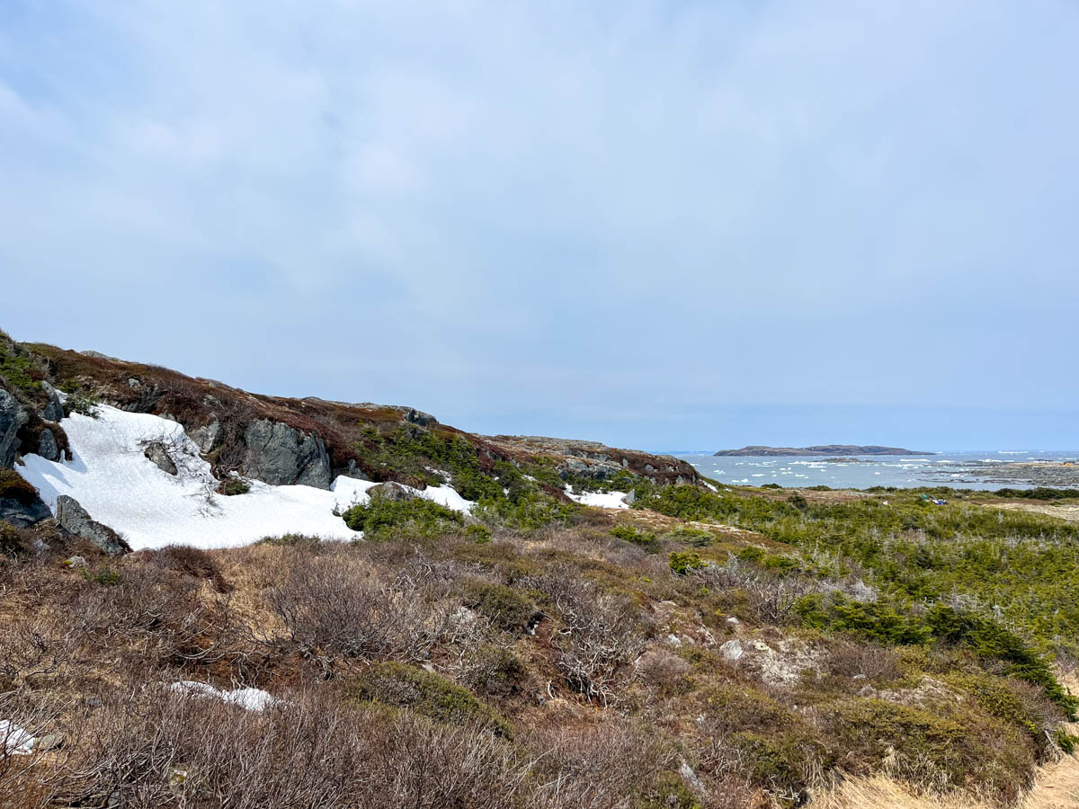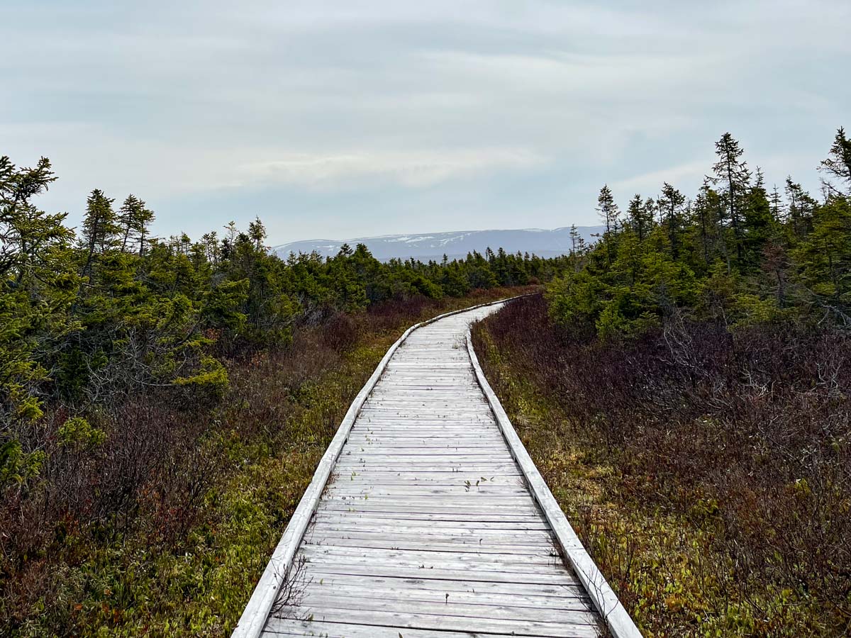 On est vraiment en mode slow travel, et le premier stop est à 10 km. C’est le Bill’s woods Trail, tout près de Daniel’s Harbour. Il fait chaud 10 degrés, et le vent se calme.