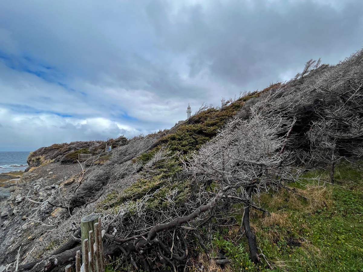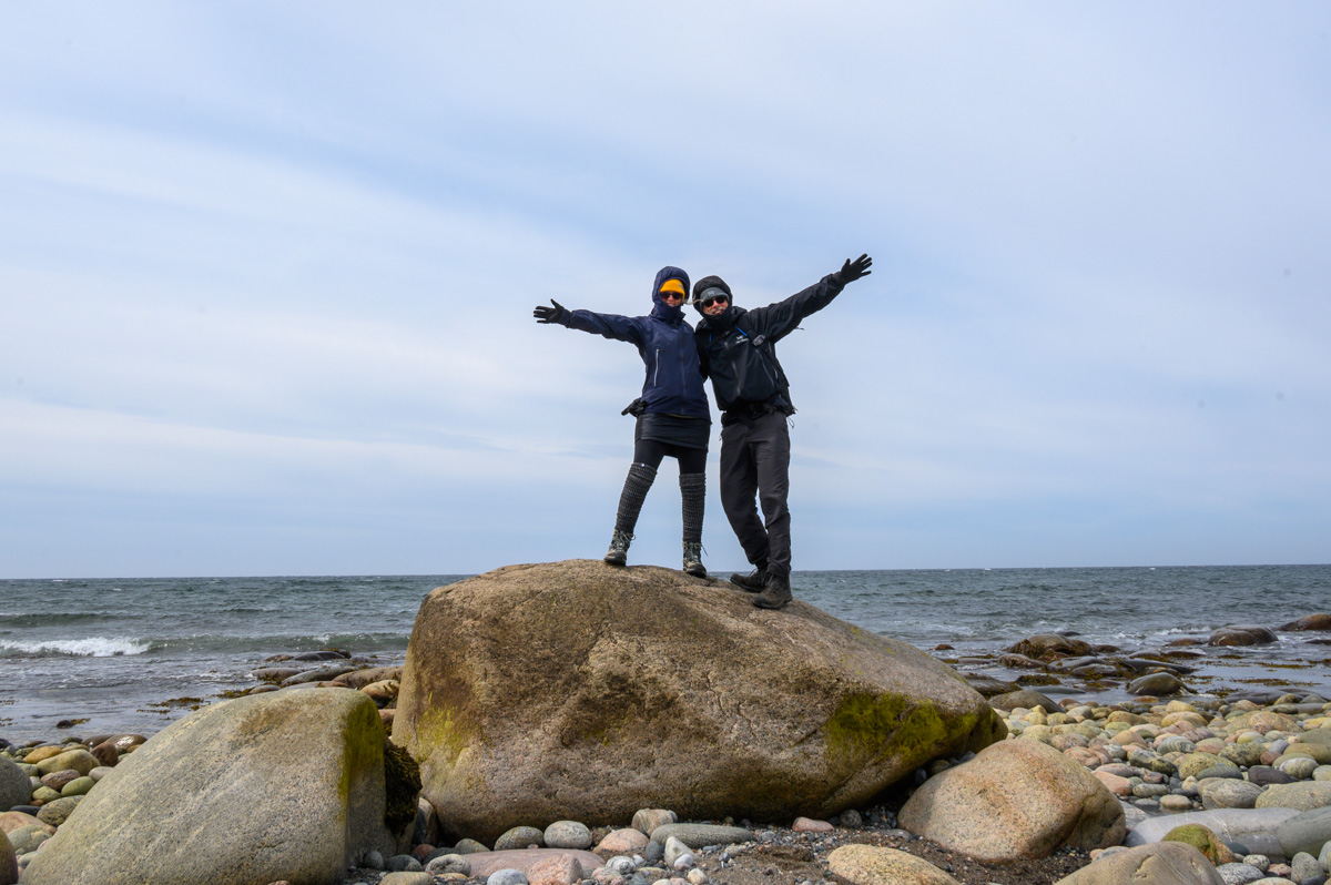 Nous quittons le phare après avoir discuté pendant un bon moment et décidons de faire quelques sentiers. Franchement, on se gèle sérieusement ! Et près de l’eau, c’est encore pire. On prend rapidement quelques photos, , comme les chinois (ais-je le droit de dire ça?), puis on se dépêche de retourner au van.