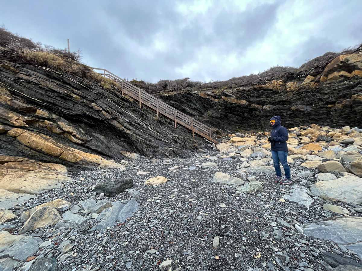 Second arrêt, Bellburns Trail, à Bellburn. Très court sentier, sur la grève dans une petite communauté. On a fait moins de 2km, mais c’est le fun. Et on repart pour 65km.