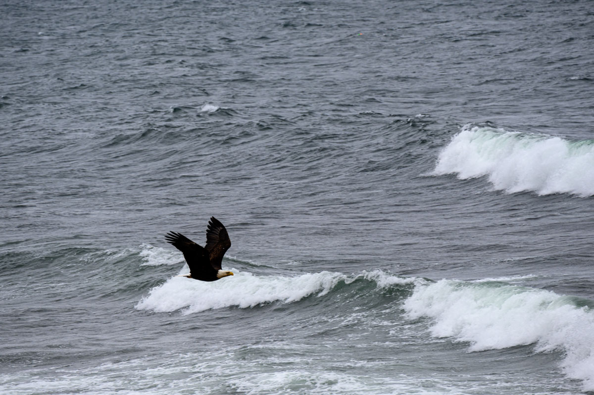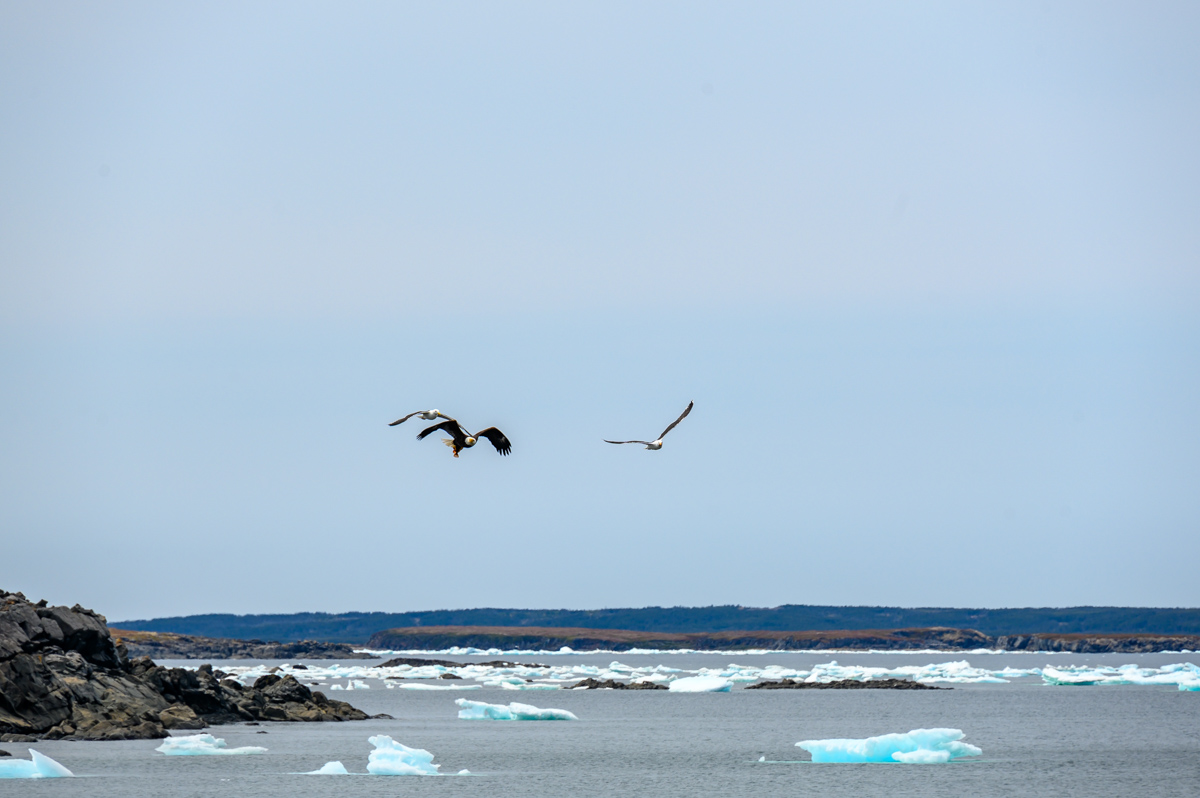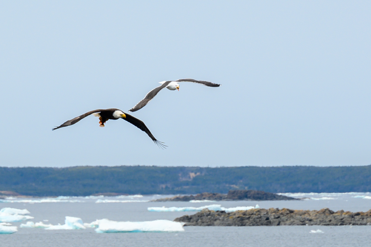 Pendant notre petite visite, un aigle s’amusait à voler les poissons des Goélands. Le petit Viking volant va!