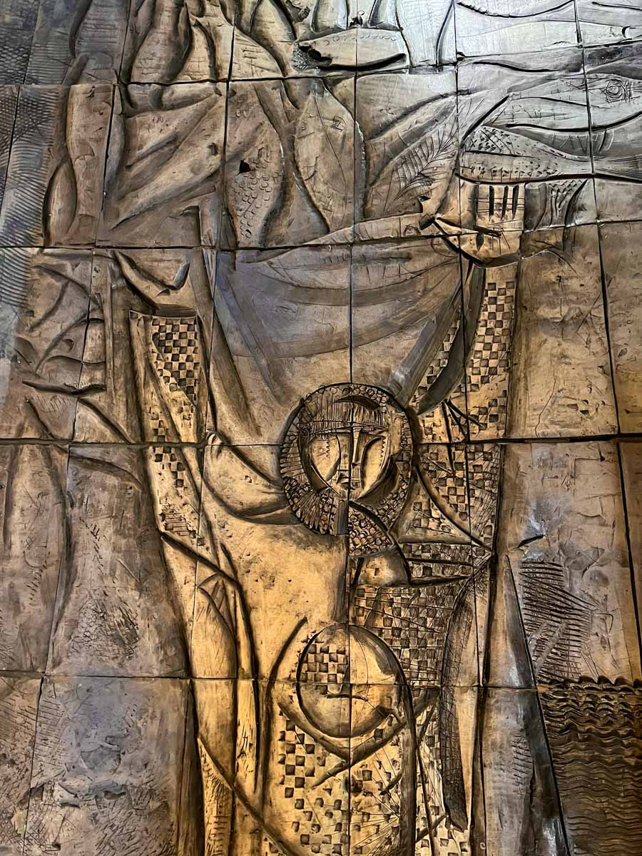 On est aussi allé voir la murale de Jordi-Bonet dans la rotonde de l’hôpital, de l’autre côté de la rue.