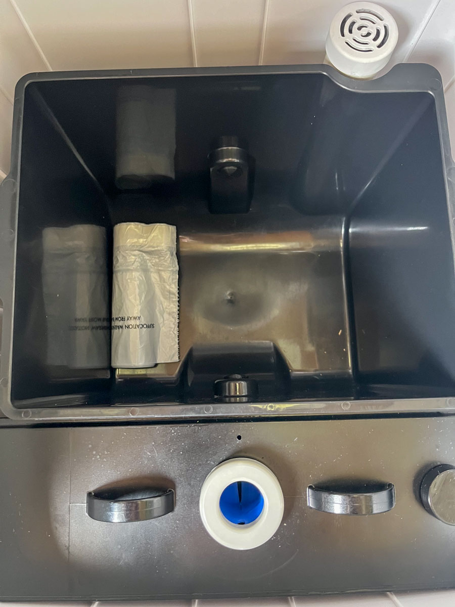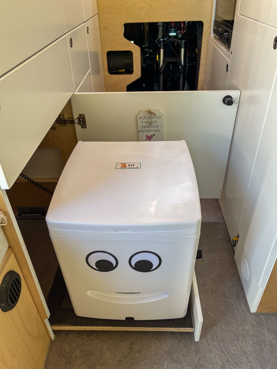 Malgré le fait que nous ne faisions JAMAIS de numéro 2, vider la toilette n’était pas une partie de plaisir. Certaines personnes, en plus de ne pas l’utiliser pour les numéros 2, n’y mettent pas de papier de toilettes. C’est une gestion qu’on n’avait pas envie de faire. Certains même utilisent cette toilette, en tant que toilette sèche, avec de la litière à chat, dans un sac.