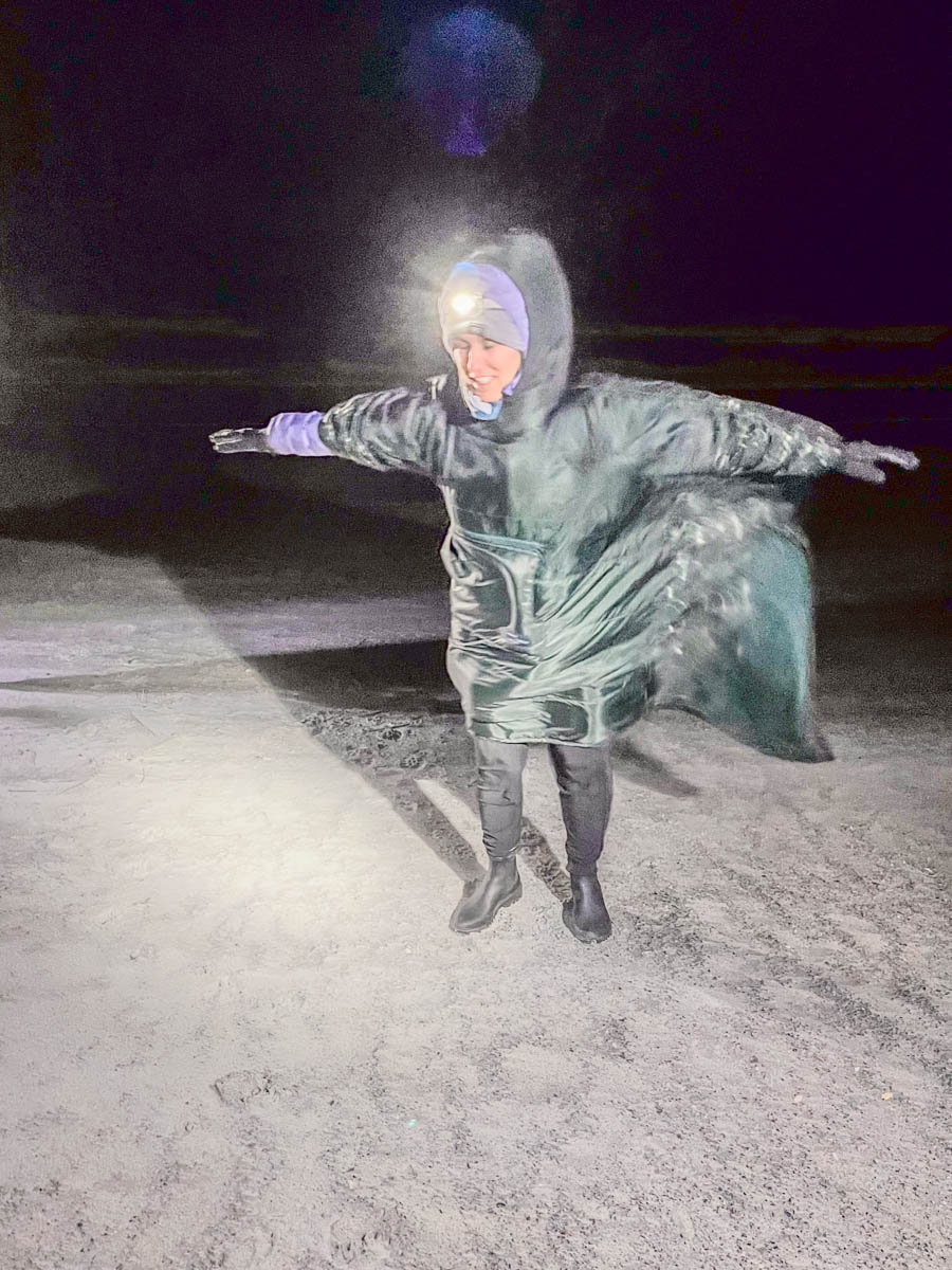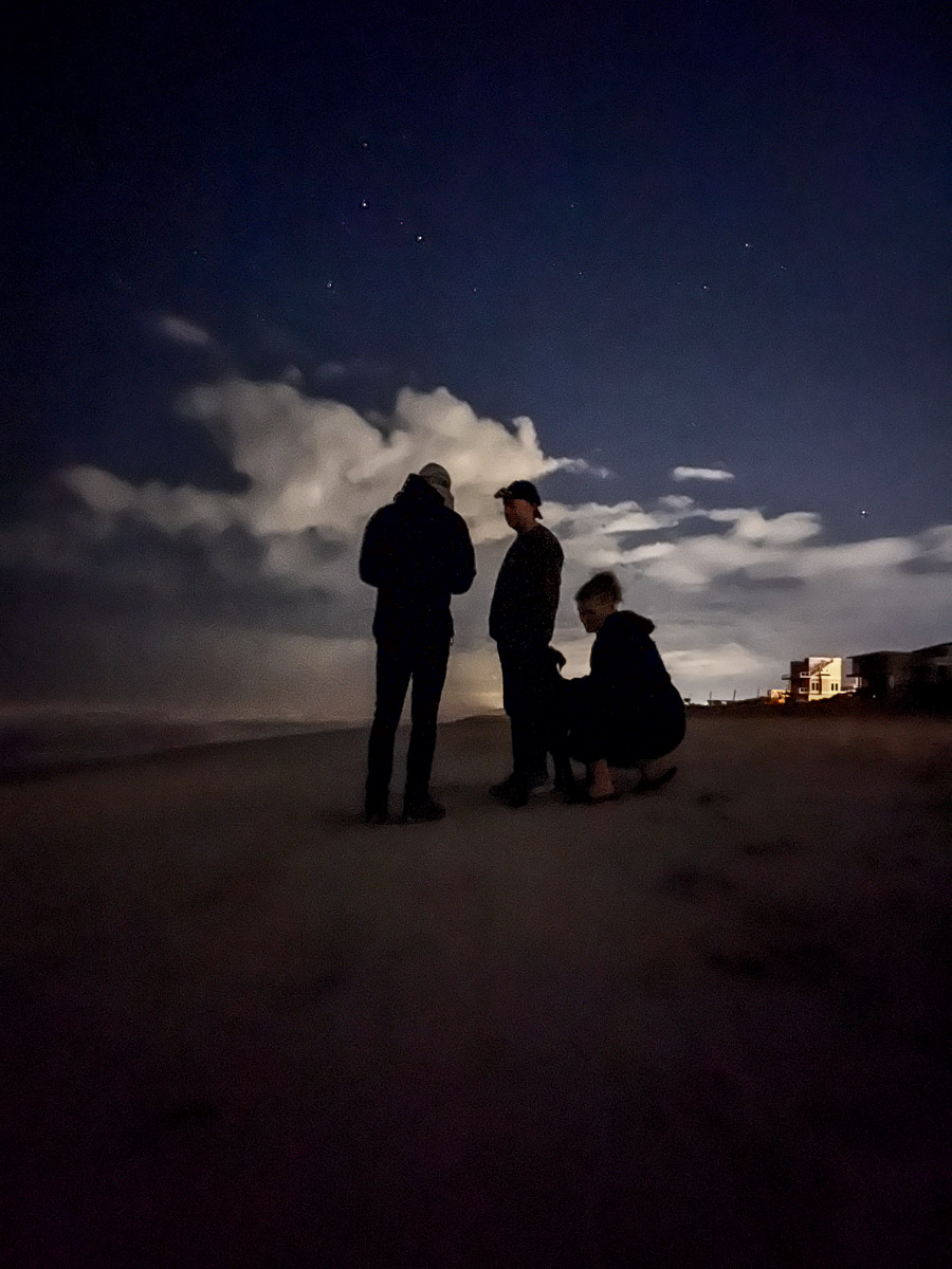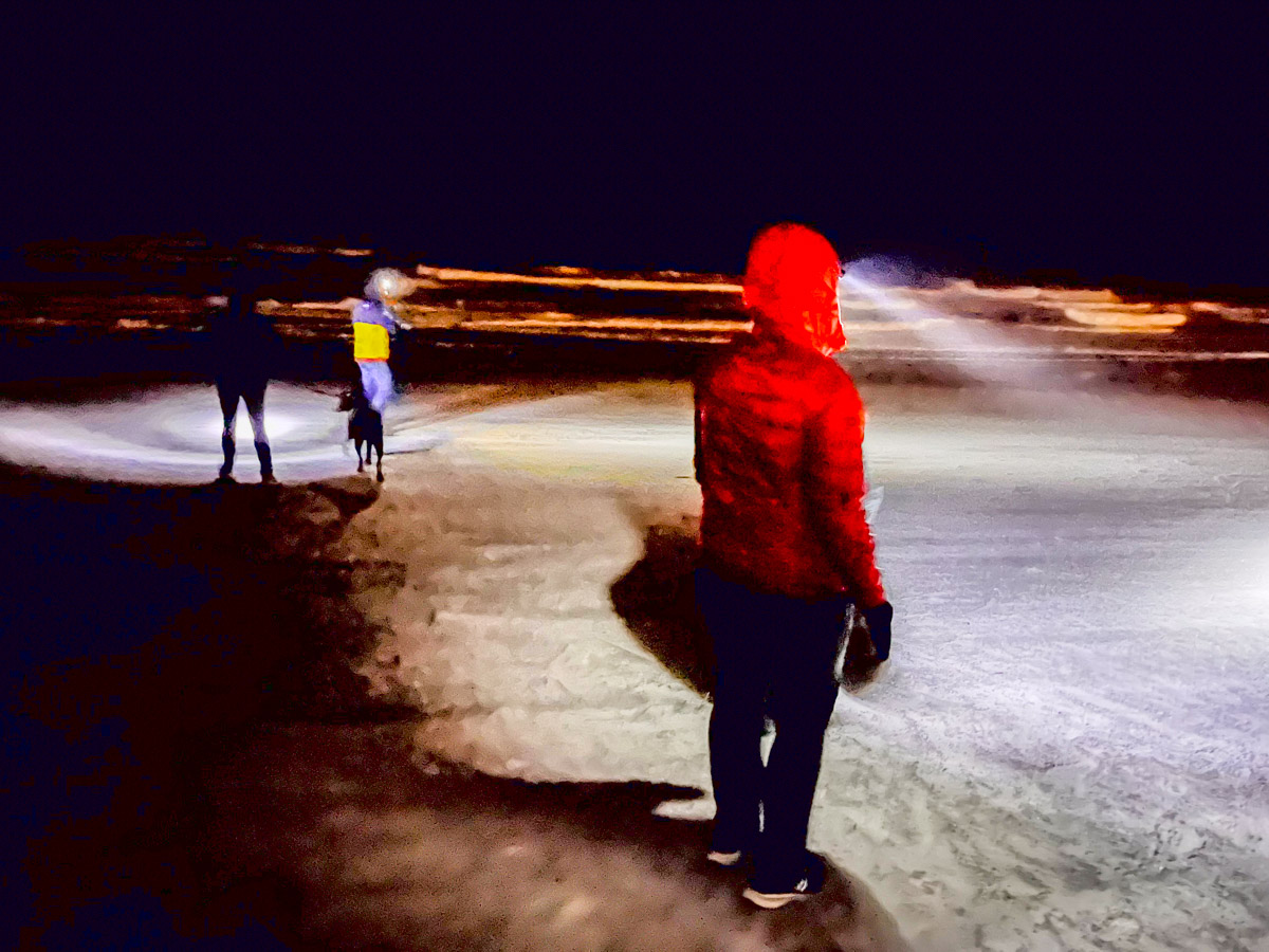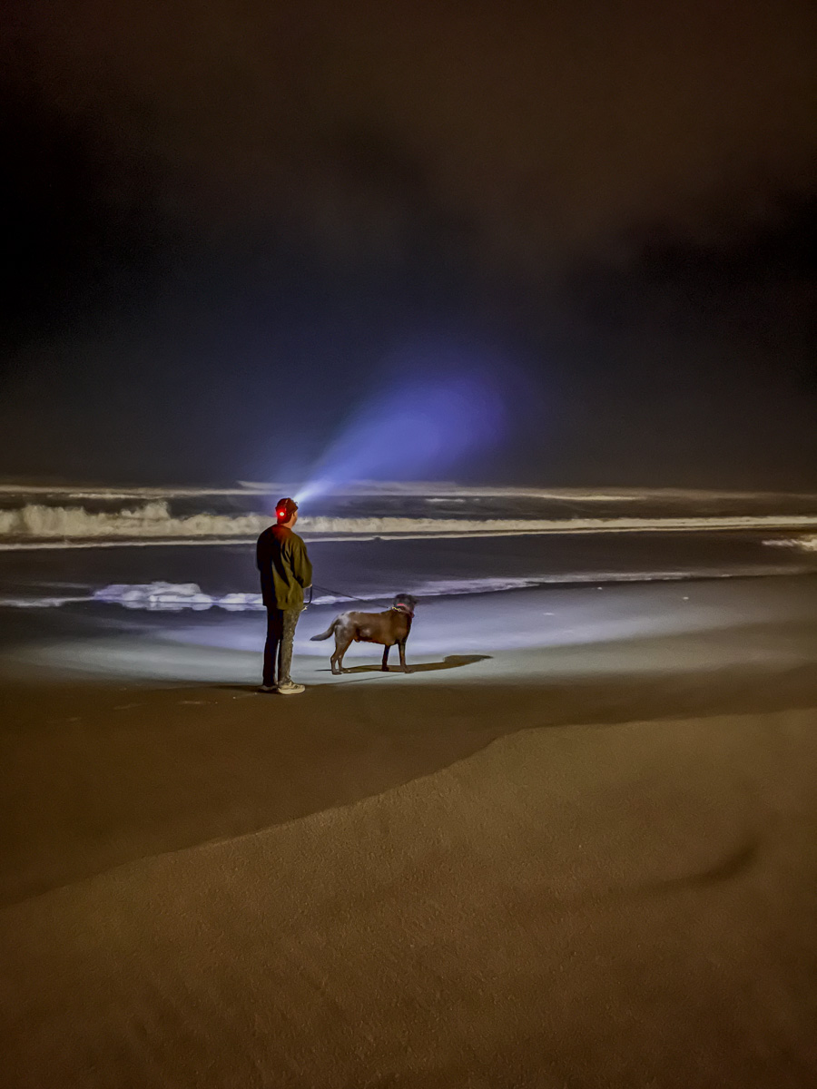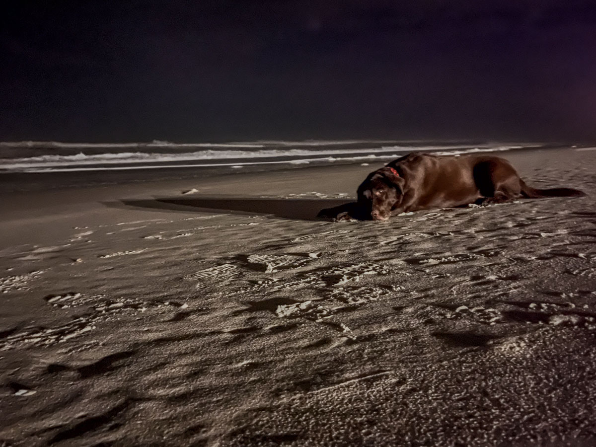 Le front froid est bien arrivé, la marche sur la plage, en soirée, a été de courte durée. Il fait froid, et le sable entre par tous les orifices de nos vêtements. Demain, on fera quelque chose de plus épuisant, pour se garder au chaud.