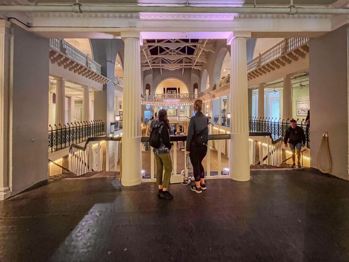 On poursuit la visite dans une belle piscine intérieure, la toute première, et de la rue la plus étroite des US.