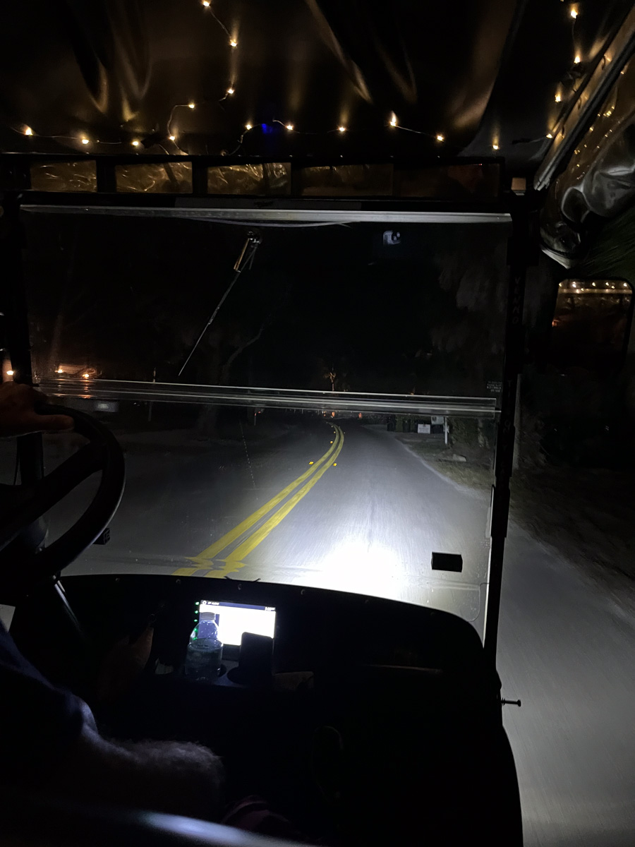 Fait non cocasse sur le chemin du retour vers notre condo de Brandenton : les phares d’un Promaster éclairent autant qu’une chandelle, ce qui fait que je n’ai pu éviter, de façon sans équivoque, un de ces crisses de gros speed bumps à Sarasota (c’est du street calming comme ils le nomment). Je pensais perdre les armoires de la van, non, mais c’est solide cette construction là…