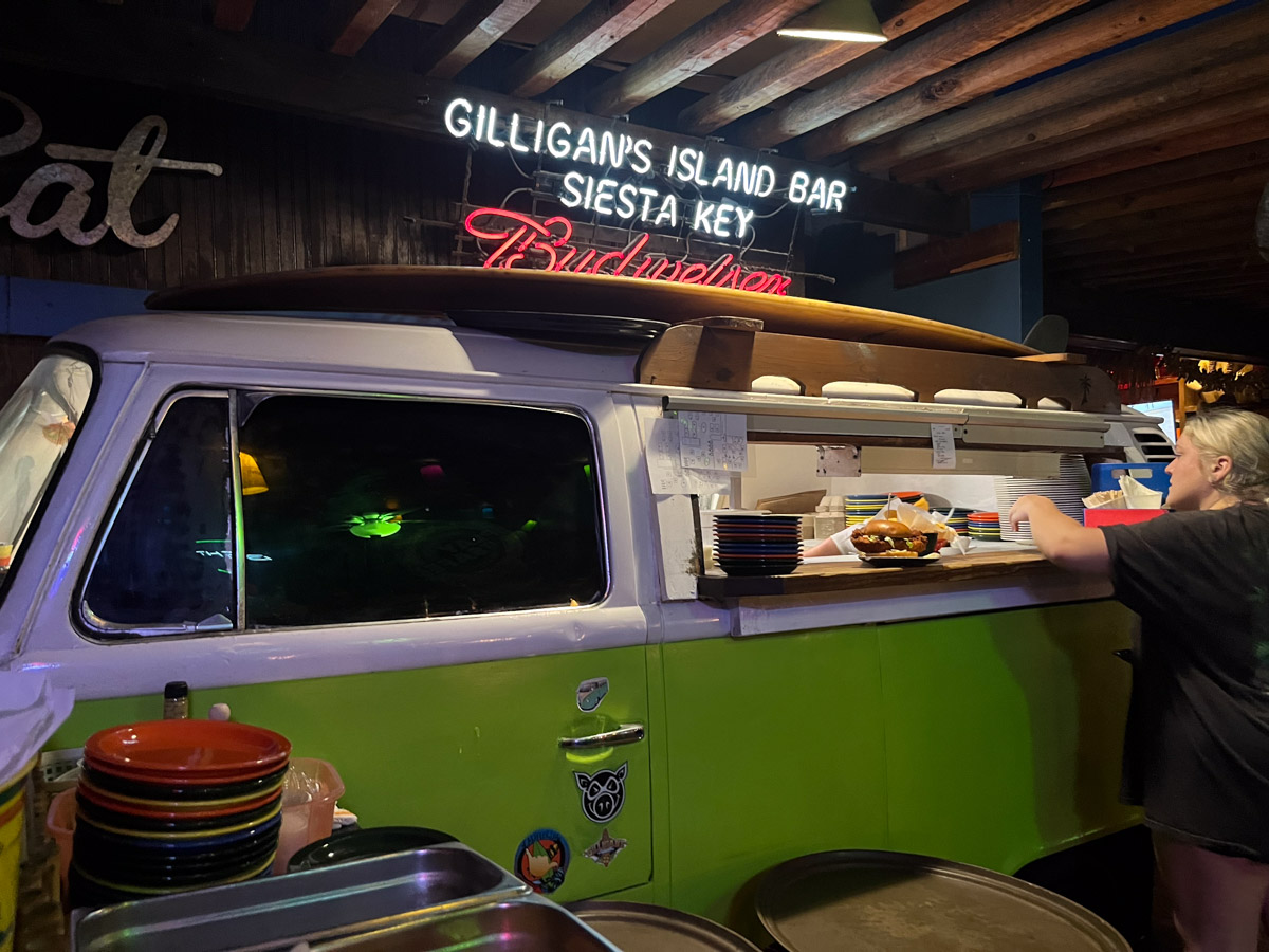 Après avoir bien bu, et s’être gelé le cerveau avec les Daiquiri, on retourne à la van. Nos compagnons sont déjà partis pour le condo (nouveau nom donné pour le Cracker Barrel). Pour nous, ce sera le resto.